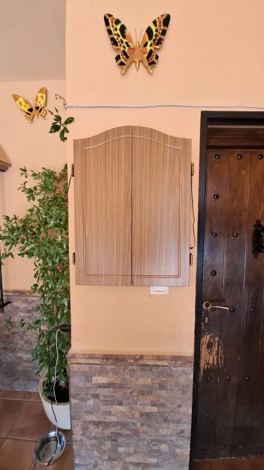 - Esthétique et rangement intégré : Son meuble mural en bois clair, avec son grain visible, se fond discrètement dans votre décor, éliminant tout désordre. Il offre un rangement sécurisé et discret pour vos 12 fléchettes à pointe souple, gardant votre espace toujours impeccable et accueillant.